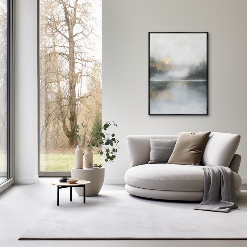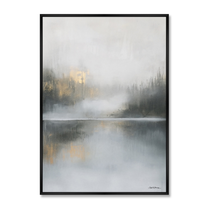 Репродукция картины на холсте Туманное утро на озере, No 2, 2025г. Картины в Квартиру
