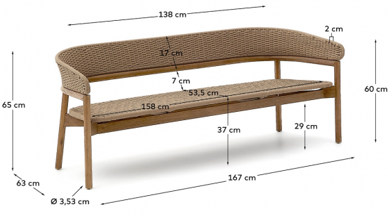 Диван Arinella — идеальное решение для тех, кто ценит стиль и функциональность в мебель для открытых пространств. Изготовленный из акации с брашированной отделкой, он придаёт вашему интерьеру атмосферу уюта и естественности. Нежная натуральная отделка и бежевый канат делают этот диван настоящим произведением искусства. Ручное плетение добавляет уникальности и подчеркивает мастерство создателей.