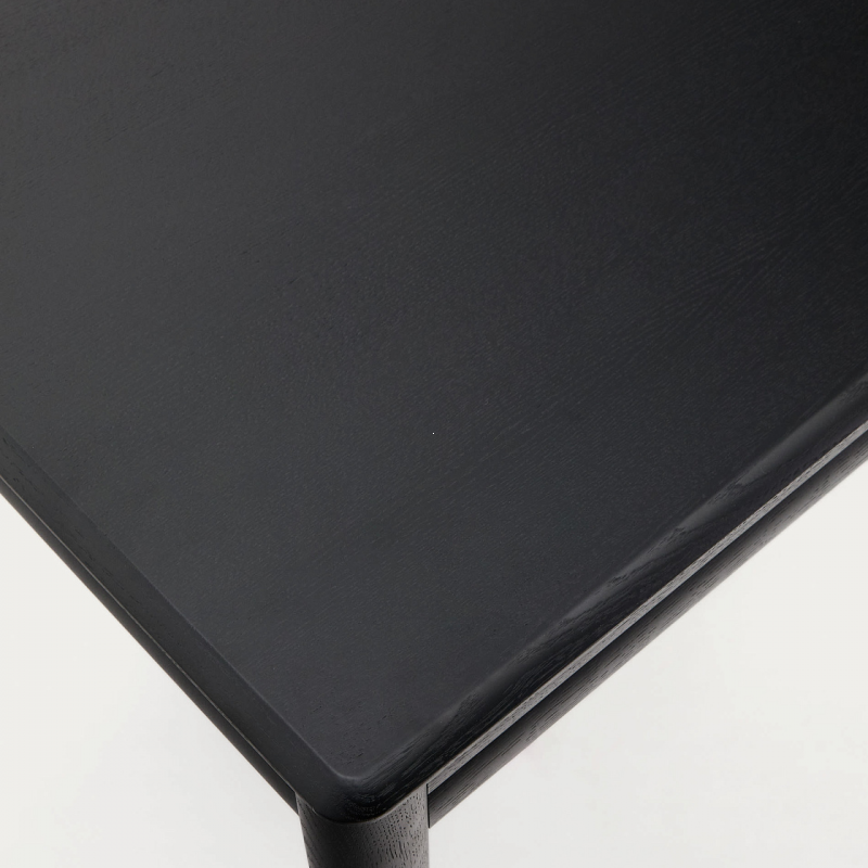 Основание стола выполнено из прочного массива дуба с черным окрашиванием, что придает ему изысканный вид и делает его легким в уходе. Деревянная столешница покрыта тонким слоем шпона, что придает ей приятную на ощупь текстуру и делает ее более устойчивой к повреждениям.