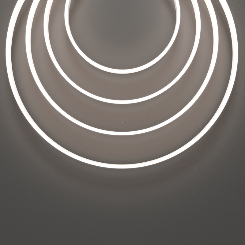 Гибкий неон представляет собой элегантную и универсальную конструкцию, которая легко принимает любые формы. Его белый цвет и гладкая фактура из силикона делают его идеальным для разнообразных дизайнерских решений. Мягкий свет, исходящий от неона, создает атмосферу спокойствия и комфорта, а его возможность изгибаться позволяет использовать его как для создания ярких акцентов, так и для контурной подсветки.