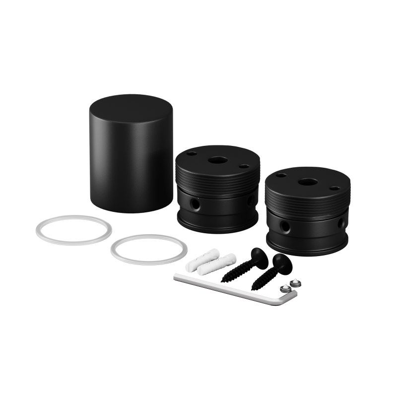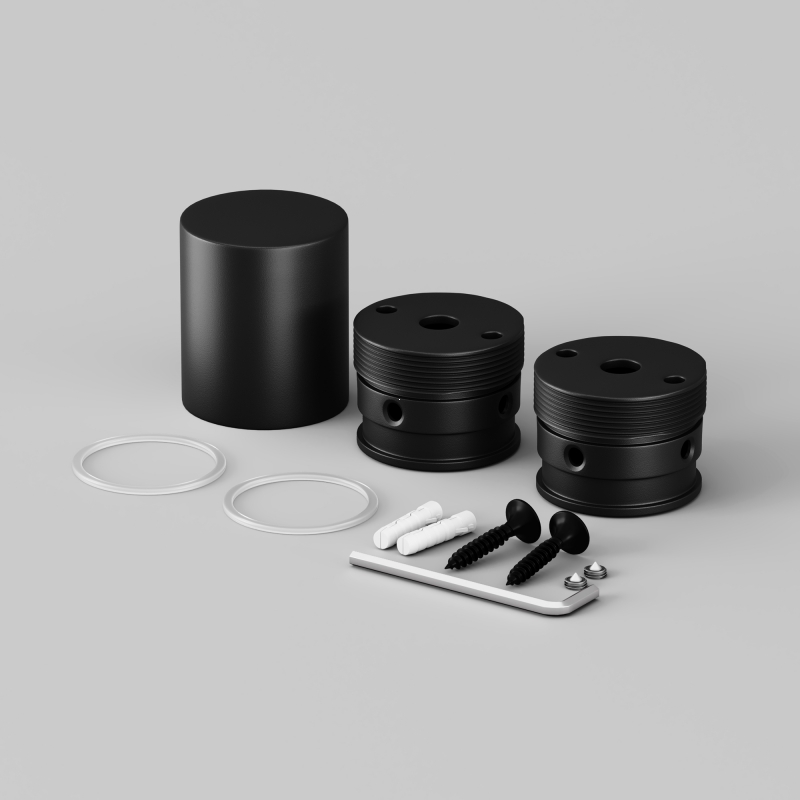 Комплектующие выполнены в элегантном черном цвете и изготовлены из качественного алюминия, что обеспечивает долговечность и современный вид. Их круглая форма и компактные размеры делают их незаметными, но в то же время функциональными в любых световых композициях.