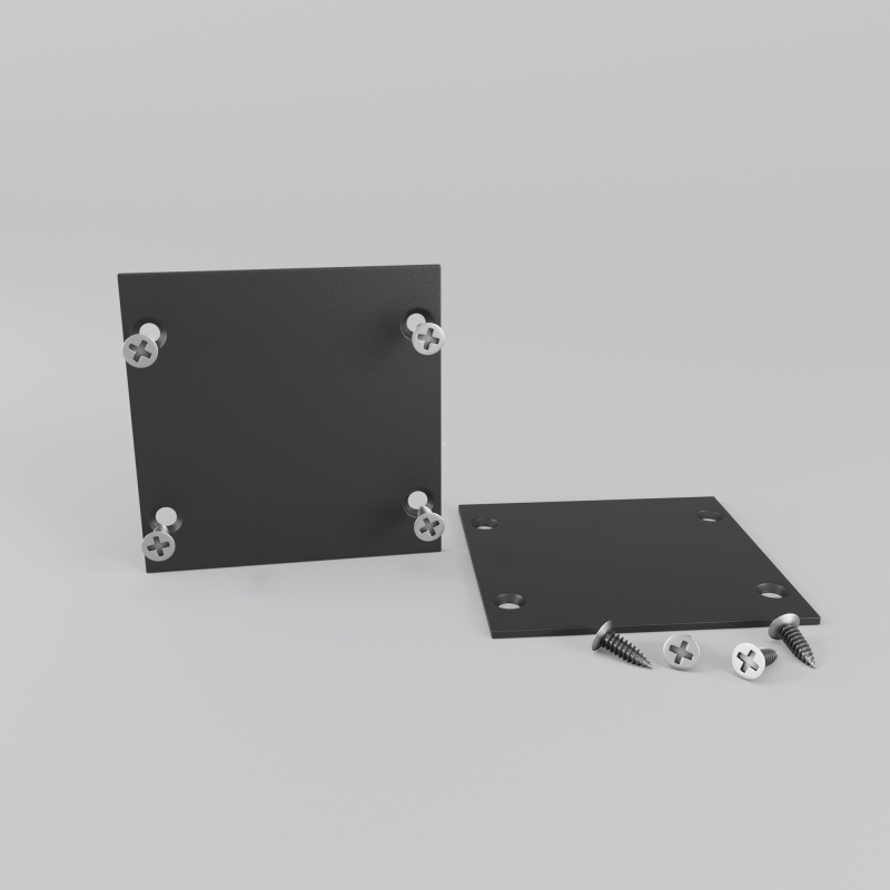 Комплектующие выполнены в строгом черном цвете, что придаёт им современный и стильный вид. Материал — металл, что гарантирует прочность и долговечность. Плоская конструкция позволяет легко интегрировать их в различные светильники и профили, создавая аккуратные переходы и линии освещения.