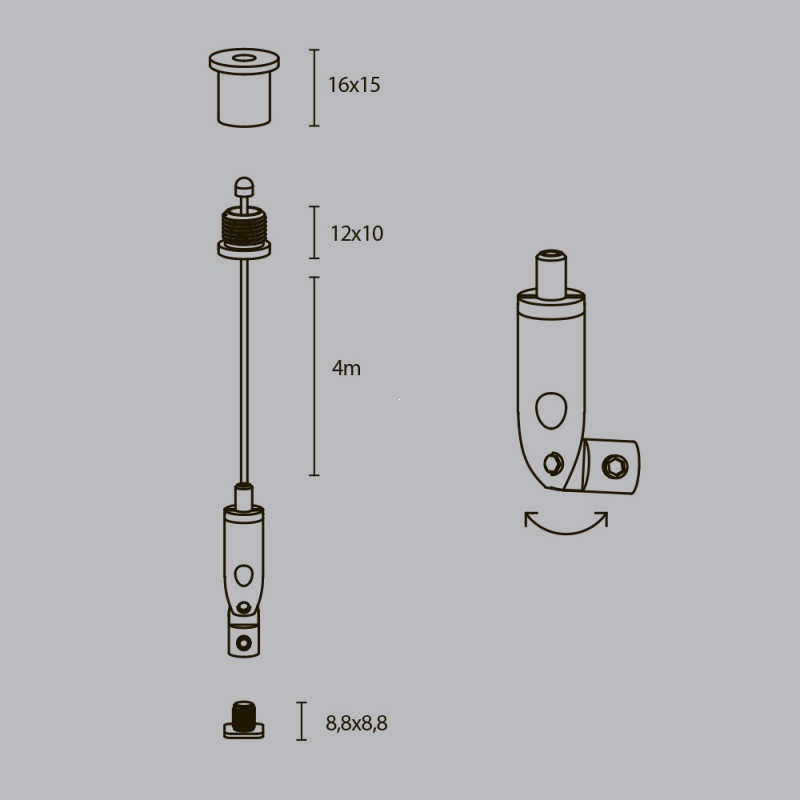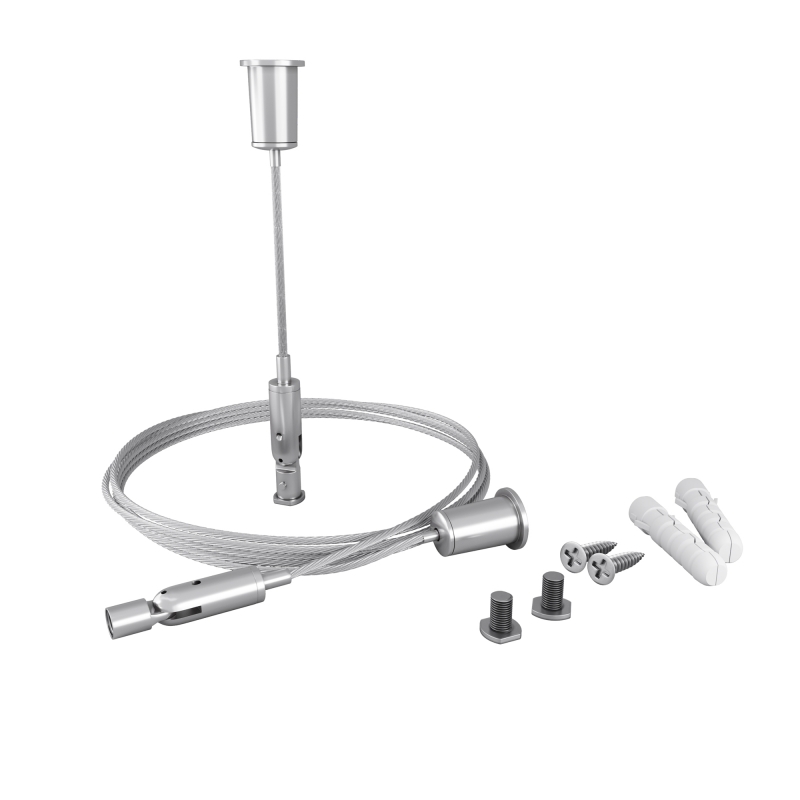 Комплект подвесов выполнен в серебристом цвете, что придаёт ему современный и стильный вид. Изготовленные из нержавеющей стали, они отличаются прочностью и долговечностью. Конструкция включает в себя элементы, которые легко интегрируются в любой интерьер, а фактура материала добавляет дополнительно ощущение качества и надежности.