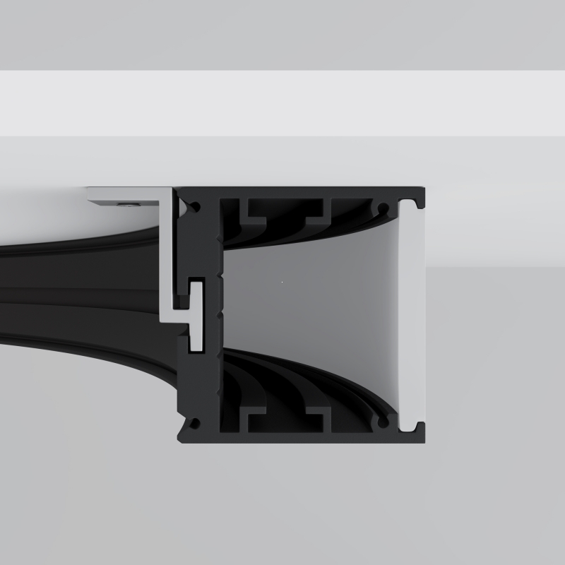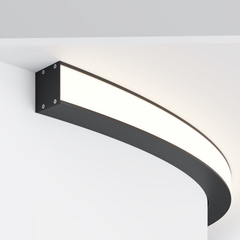 Профиль имеет аккуратную радиусную форму, что позволяет легко интегрировать его в различные интерьеры. Выполненный в черном цвете, он добавляет выразительности и современного стиля. Алюминиевый материал обеспечивает не только долговечность, но и элегантную текстуру, которая прекрасно вписывается в минималистичный или современный декор.