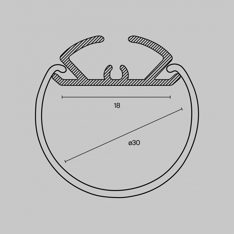 - Алюминиевый профиль подвесной D30 (Серебро, 2 м), ALM-D30-S-2M