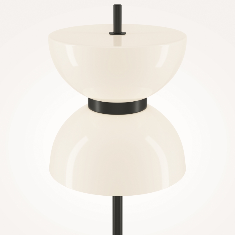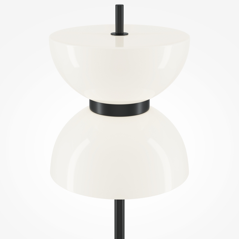 Этот торшер имеет уникальную форму абажура, который состоит из двух элементов, что придает ему современный и оригинальный вид. Черный металлический каркас уверенно поддерживает абажур из белого стекла, создавая контраст, который привлекает внимание. Мраморное основание добавляет устойчивости и подчеркивает изысканность всего изделия. Декор в виде гладких линий и округлых форм делает светильник универсальным и подходящим для различных стилей интерьера.