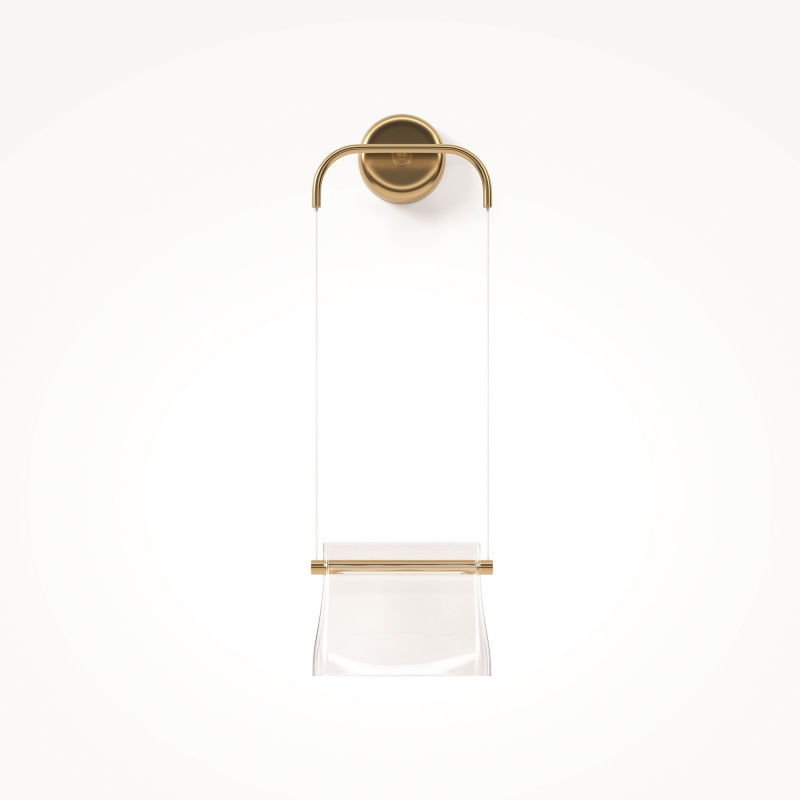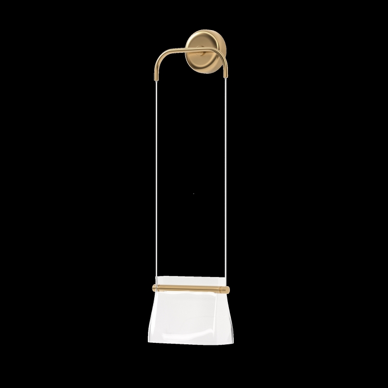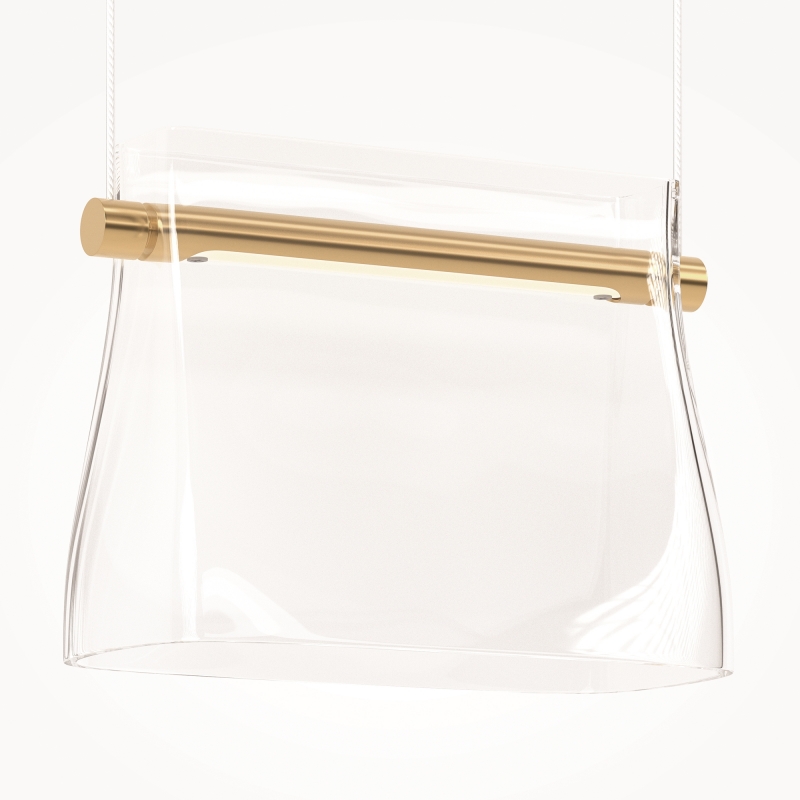 Светильник выполнен в современном стиле, сочетая простоту и элегантность. Латунный каркас с сатинированной отделкой придает ему благородный вид, а прозрачный абажур из стекла добавляет легкости. Нестандартная форма плафона создает интересный визуальный эффект, а свет, проходя сквозь стекло, наполняет пространство мягким и приятным светом.