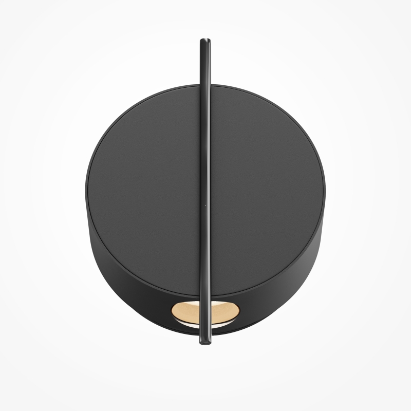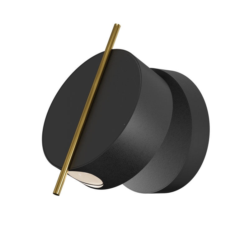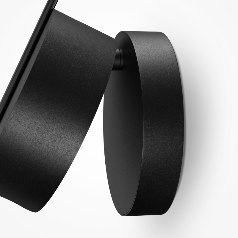 Светильник имеет круглую форму, выполнен из алюминия, что придает ему современный и минималистичный вид. Чёрный цвет корпуса прекрасно сочетается с любыми интерьерами, а гладкая текстура добавляет изысканности. Особенностью дизайна является тонкий металлический шток, который позволяет направлять световой поток в нужную сторону, создавая эффектный световой акцент.
