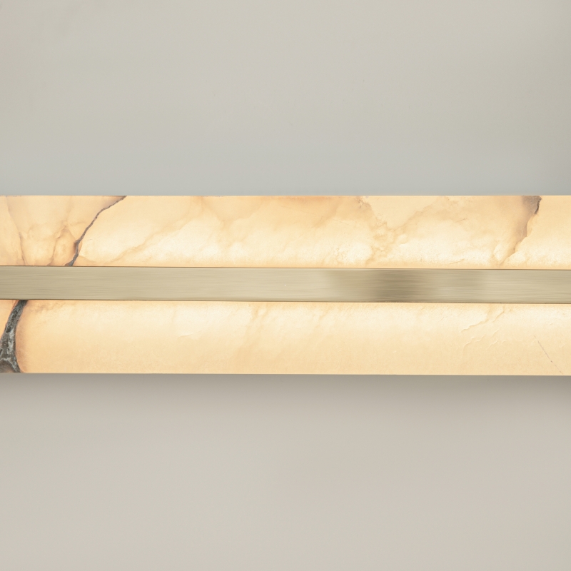 Настенный светильник имеет лаконичную прямоугольную форму, которая легко вписывается в различные интерьеры. Стильный латунный корпус гармонично сочетается с белым абажуром из алебастра, создавая эффект мягкого переотраженного света. Приятные линии и текстуры светильника придают ему современный вид, делая его не только источником света, но и элементом декора.