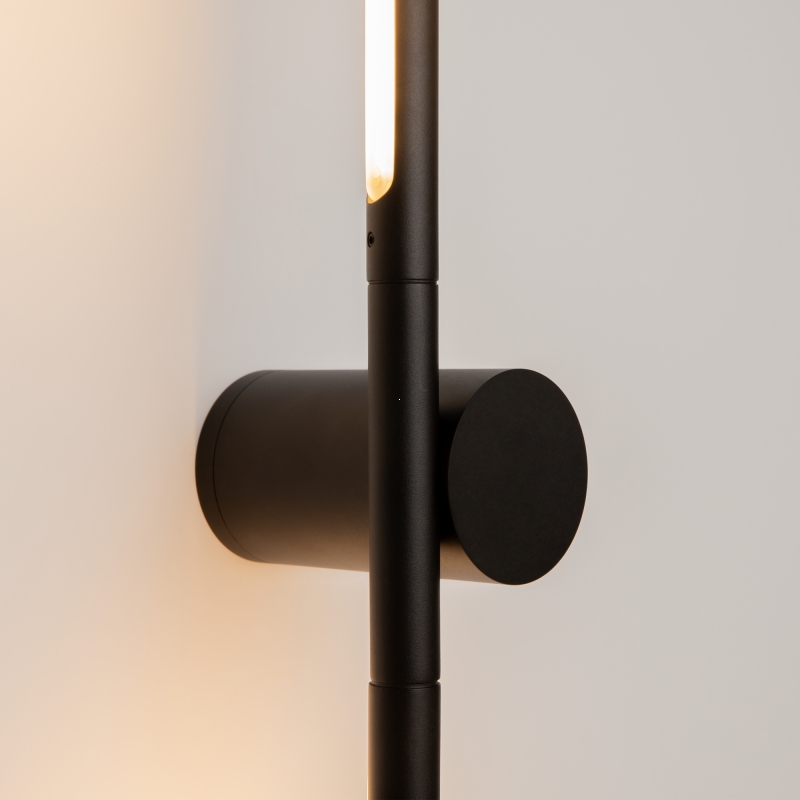 Светильник имеет минималистичную конструкцию с изящным черным алюминиевым корпусом и белым акриловым абажуром. Тонкий световой стик диаметром всего 19 мм с отступом от стены в 103 мм создает эффект невидимости, позволяя сосредоточиться на игре света и теней. Современный стиль и лаконичные линии делают этот светильник идеальным для любого интерьера.