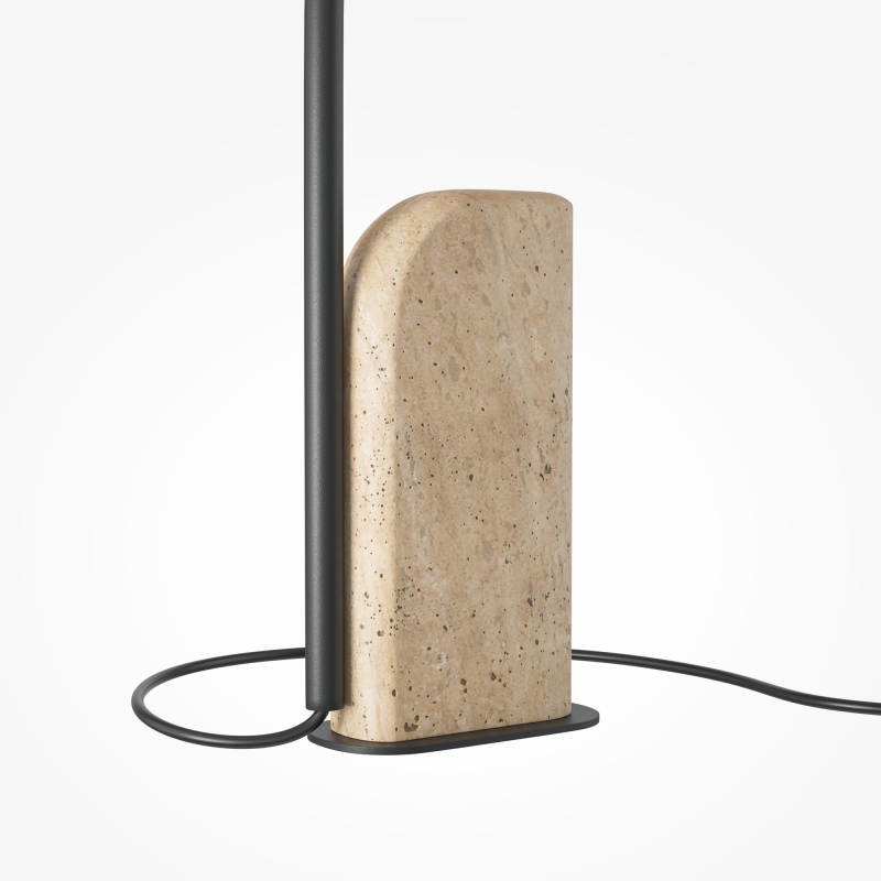 Настольный светильник имеет современный и стильный дизайн, который отлично сочетается с разнообразными интерьерами. Его основа выполнена из прочного травертина, что придаёт изделию уникальный характер. Черный металлический каркас создает контраст с нежным белым абажуром из хлопка, который обеспечивает мягкое и равномерное освещение. Форма светильника лаконична, а детали продуманы до мелочей, что делает его универсальным элементом декора.