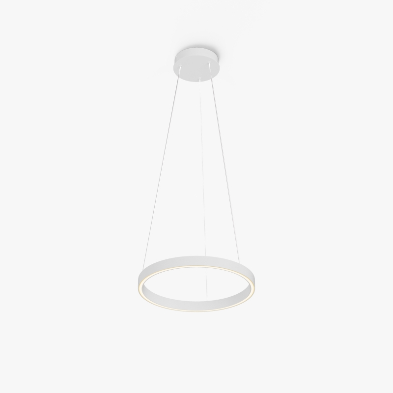 Подвесной светильник Rim представлен в форме окружности, что придает ему элегантный и минималистичный вид. Изготовленный из качественного алюминия с силиконовым абажуром, он отличается прочностью и долговечностью. Белая цветовая гамма позволяет ему гармонично сочетаться с различными стилями интерьера — от скандинавского до современного. Светильник оснащен встроенными LED-источниками, которые обеспечивают равномерное и мягкое освещение, создавая комфортную атмосферу.