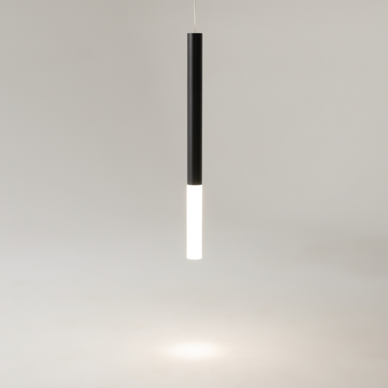 Светильник имеет минималистичный и лаконичный дизайн, выполненный из высококачественного алюминия с черным матовым покрытием. Длинная цилиндрическая форма с гладкой текстурой придает ему современный вид, а абажур, выполненный из алюминия, обеспечивает равномерное рассеивание света. Этот светильник станет стильным акцентом в вашем интерьере, подчеркивая его изысканность и утонченность.