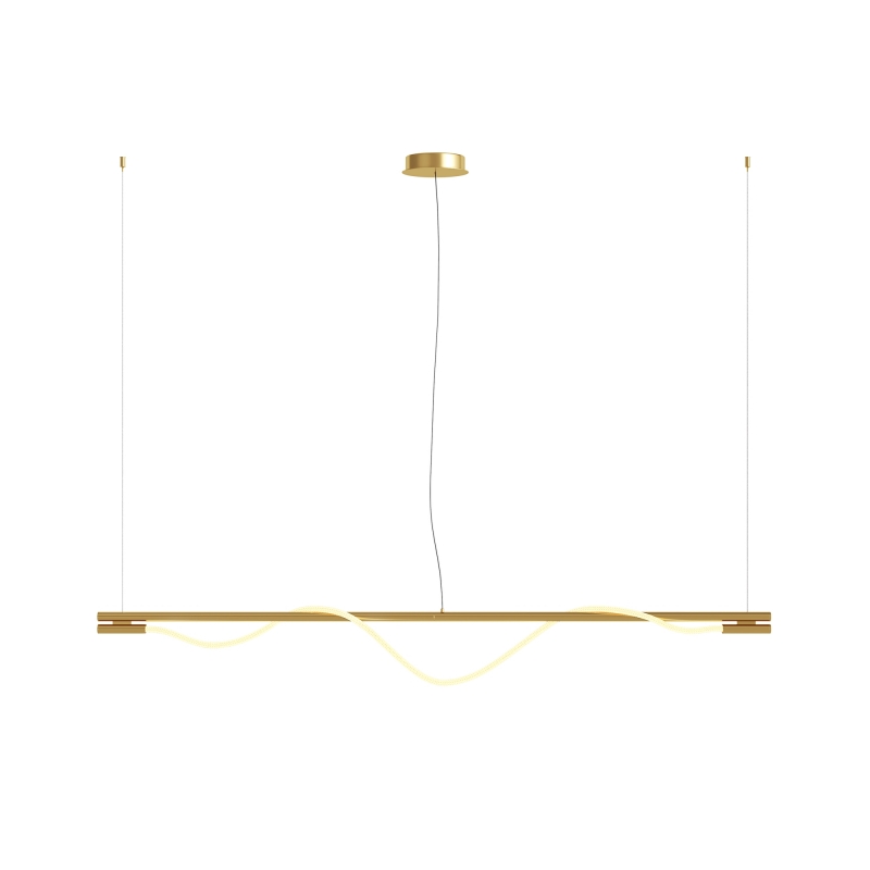 Подвесной светильник Tau привлекает внимание своей минималистичной формой и изысканным сочетанием цветов. Золотой корпус из алюминия прекрасно гармонирует с белым текстильным абажуром, создавая эффектный контраст. Стильный и современный, он будет уместен в интерьере в стиле модерн, скандинавском или даже классическом. Мягкое рассеивание света через текстиль придаёт помещению особую теплоту и уют.