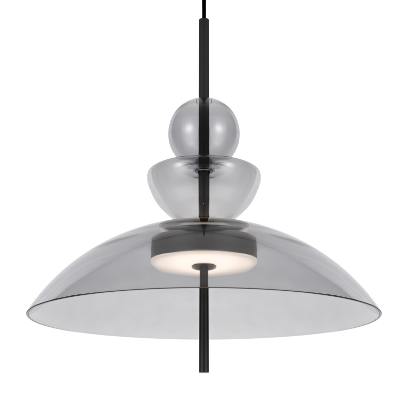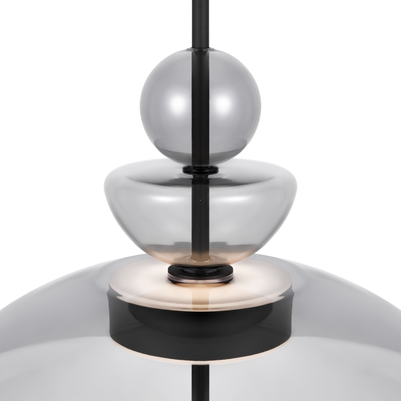 Светильник представляет собой стильное сочетание черного металлического каркаса и серого стеклянного абажура. Минималистичный дизайн с плавными линиями и округлой формой придает ему изысканность. Стекло с дымчатым эффектом создает мягкое рассеивание света, добавляя нотку загадочности и стиля. Этот светильник не только освещает пространство, но и служит ярким акцентом в интерьере.