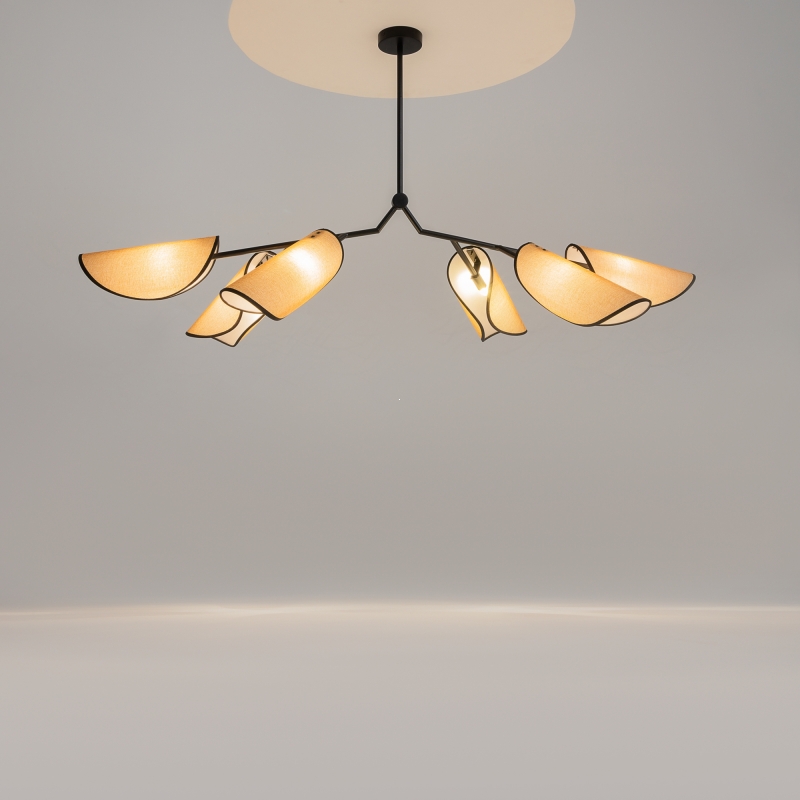 Этот светильник представляет собой изысканную конструкцию с черной металлической арматурой и коричневыми плафонами из натуральной рогожки, которые обрамлены черной тканевой окантовкой. Ассиметричная форма плафонов не только привлекает внимание, но и позволяет свету мягко рассеиваться, создавая уютное освещение. Комбинация материалов и стильного дизайна подчеркивает современный стиль, что делает его отличным выбором для любого интерьера.