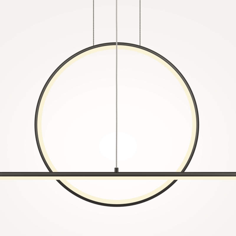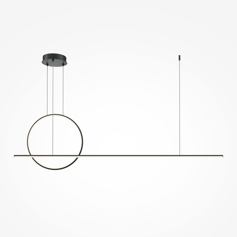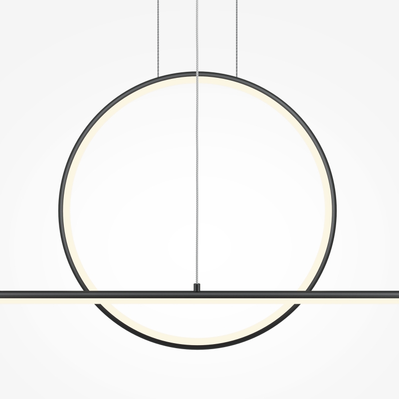 Этот светильник впечатляет своей геометрической формой, сочетая в себе элегантность и минимализм. Черный алюминиевый каркас в сочетании с белым силиконовым абажуром создает контраст, который привлекает внимание. Длина светильника 143 см и высота до 3 метров делают его идеальным для установки над обеденным столом или в высокой комнате. Стиль Maytoni Modern добавляет нотку современности и утонченности.