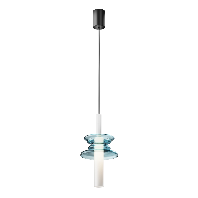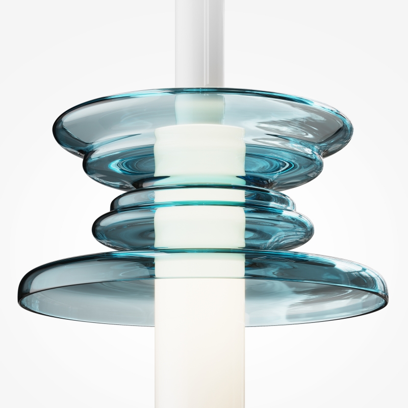 Этот светильник обладает уникальной многослойной конструкцией, вдохновленной формой звуковой волны. Стеклянный абажур в синих и черных тонах создает эффектный контраст, который притягивает взгляды и наполняет пространство мягким светом. Элегантная форма и сочетание материалов — металла и стекла — делают светильник стильным элементом декора. Нестандартный абажур подчеркивает креативный подход к дизайну и привносит нотку современности в вашу обстановку.