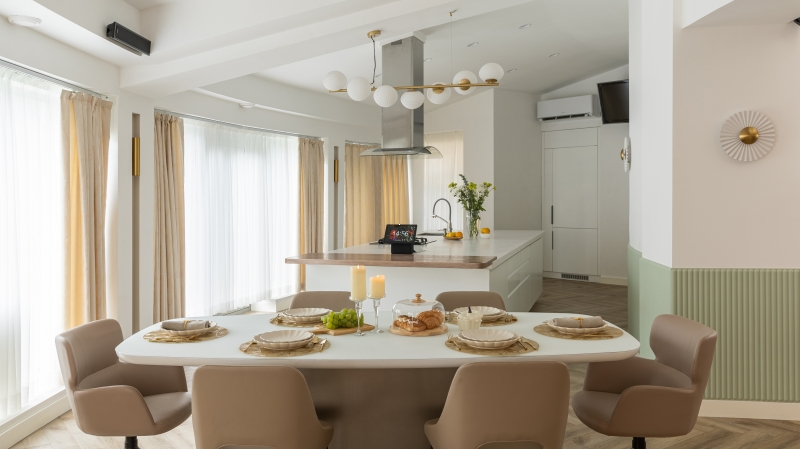 Подвесной светильник Reels станет идеальным решением для современных интерьеров в стилях минимализма, скандинавского или даже хай-тек. Его уникальный дизайн прекрасно дополнит как светлые, так и темные пространства, создавая стильный контраст. Вы можете использовать его над обеденным столом, в кухне или даже в спальне, чтобы добавить изюминку в ваш интерьер.