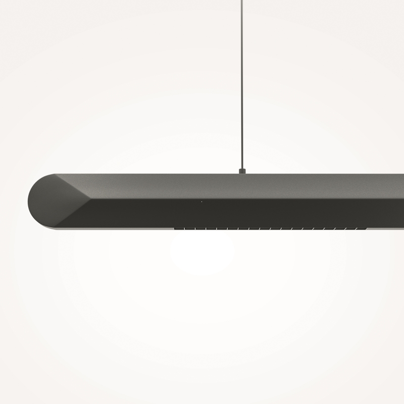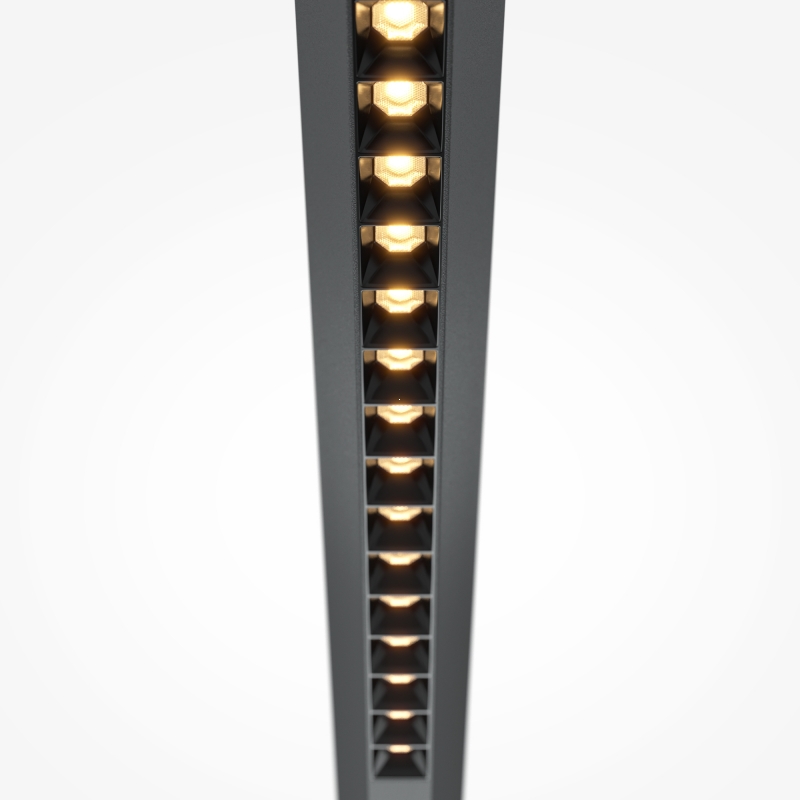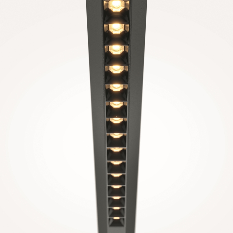 Этот светильник представляет собой минималистичную конструкцию с тонким черным алюминиевым корпусом. Его лаконичные линии и гладкая поверхность подчеркивают современный стиль и делают его универсальным в сочетании с различными интерьерами. Стильный дизайн позволяет интегрировать его в пространство, сохраняя при этом воздушность и легкость.