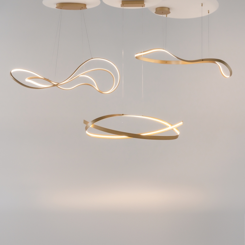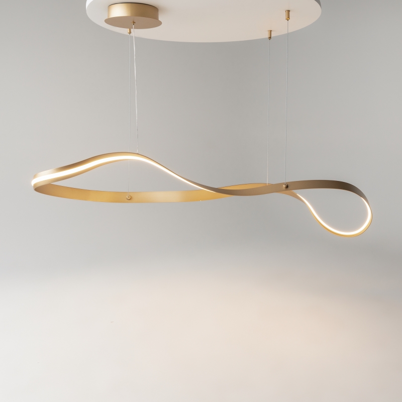 Этот светильник имеет уникальную конструкцию из алюминия, окрашенного в благородный латунный цвет. Легкие волнообразные линии придают ему динамичность и современный вид. Белый силиконовый рассеиватель обеспечивает мягкий свет, создавая комфортное освещение. Фактура металла и простота форм сделают его стильным акцентом в любом пространстве.