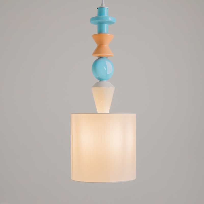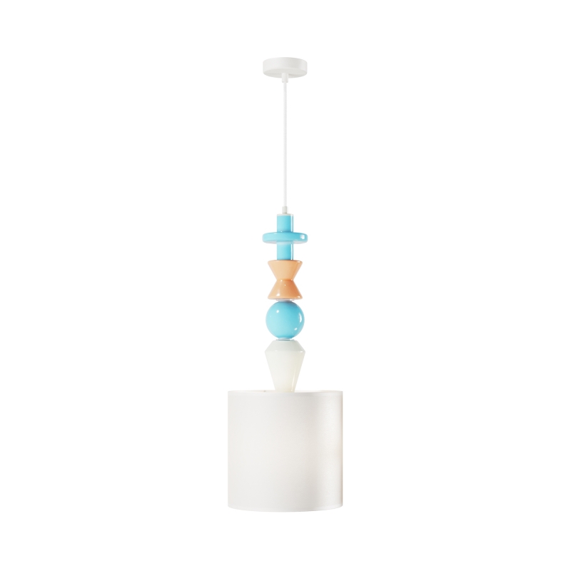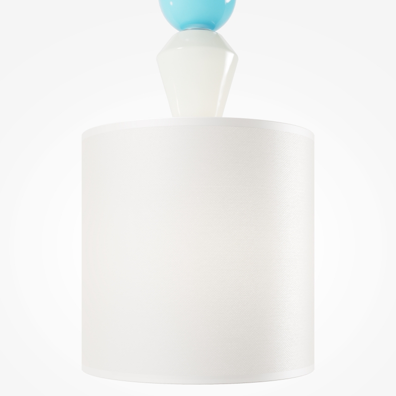Светильник выполнен в современном минималистичном стиле, с классической цилиндрической формой абажура. Белый цвет основного корпуса и абажура создает ощущение легкости и чистоты, а текстильный материал абажура обеспечивает мягкое рассеяние света, придавая помещению уют. Декоративные элементы из керамики добавляют игривости и стиля, гармонируя с любым интерьером.
