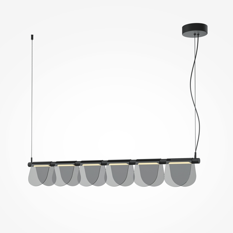 Подвесной светильник Fluffy выполнен в современном стиле, что делает его универсальным решением для любого интерьера. Черная металлическая арматура контрастирует с серыми плафонами из высококачественного стекла, создавая гармоничное сочетание. Дизайн светильника подчеркивает чистоту линий и современностью, а его фактура добавляет интересные акценты. Специальные плафоны в форме капель обеспечивают равномерное рассеивание света и привлекают внимание своим оригинальным видом.