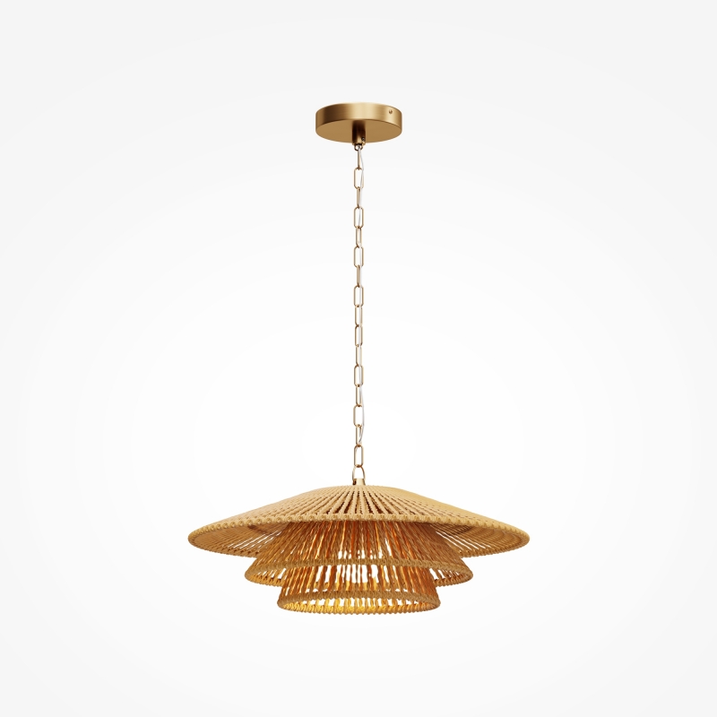 Этот светильник отличается трипл-пластинчатой конструкцией, выполненной из ротанга, что придаёт ему лёгкость и элегантность. Латунные детали подчеркивают стиль и добавляют роскоши. Терракотовый цвет абажура создает теплое и приятное освещение, идеально подходя для создания уюта в любом пространстве.