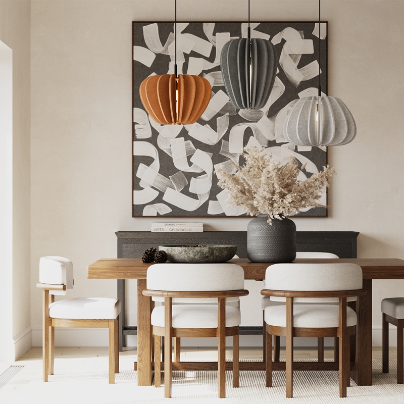 Цвет арматуры — чёрный. Материал арматуры — металл. Вариативность композиций и цветовых решений. Абажуры из фетра с эффектом шумоизоляции. Светильники-трансформеры с поворотным абажуром. Регулируемый провод - 3 метра, подходят для помещений с высокими потолками. Доступны в 4 цветах и 3 формах, идеально сочетающихся между собой. Подходят для создания оригинальных композиций.