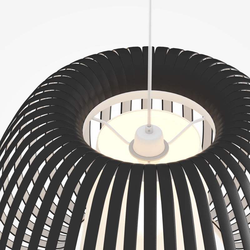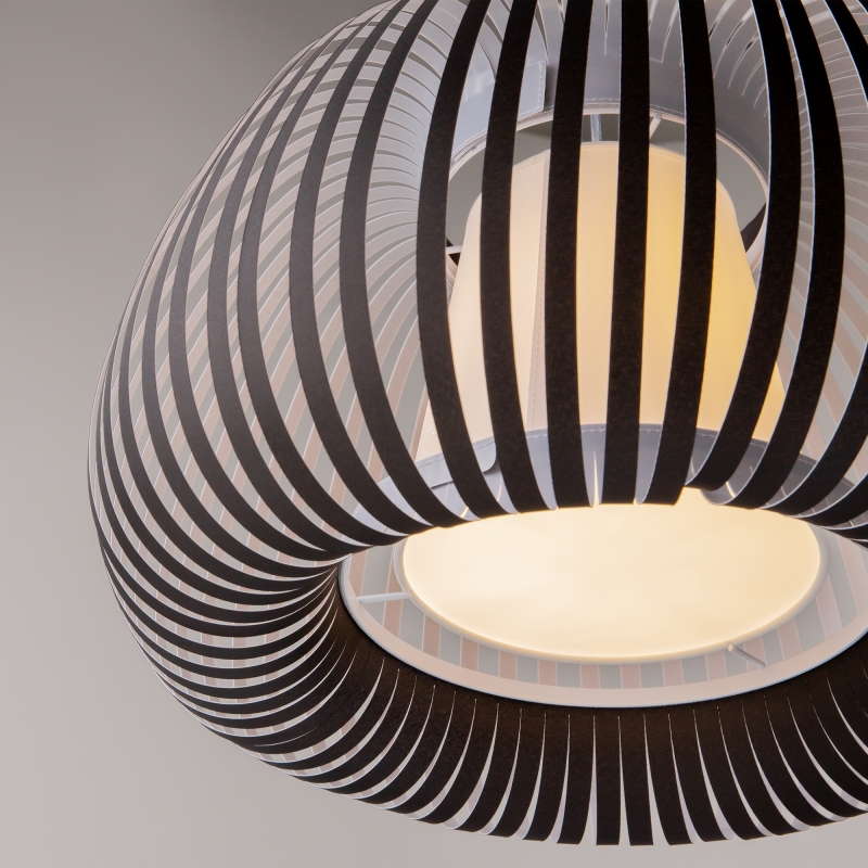 Серия Kirigami выделяется необычным подходом к декорированию абажуров. Тонко нарезанные полоски органзы собраны в куполообразный абажур. Светильники представлены в двух цветах: монохромный белый и контрастный черный. Хлопковый рассеиватель скрывает сменный источник с цоколем Е27. Металлическая арматура подвесных светильников и настольной лампы окрашена в белый цвет с антибликовым покрытием. Простая палитра и оригинальный дизайн универсальны для большинства интерьеров: от минимализма до фьюжн.