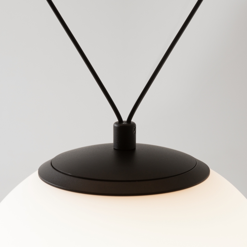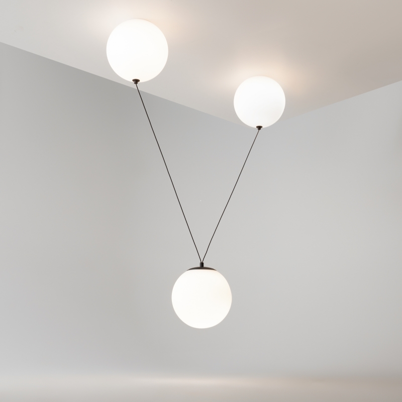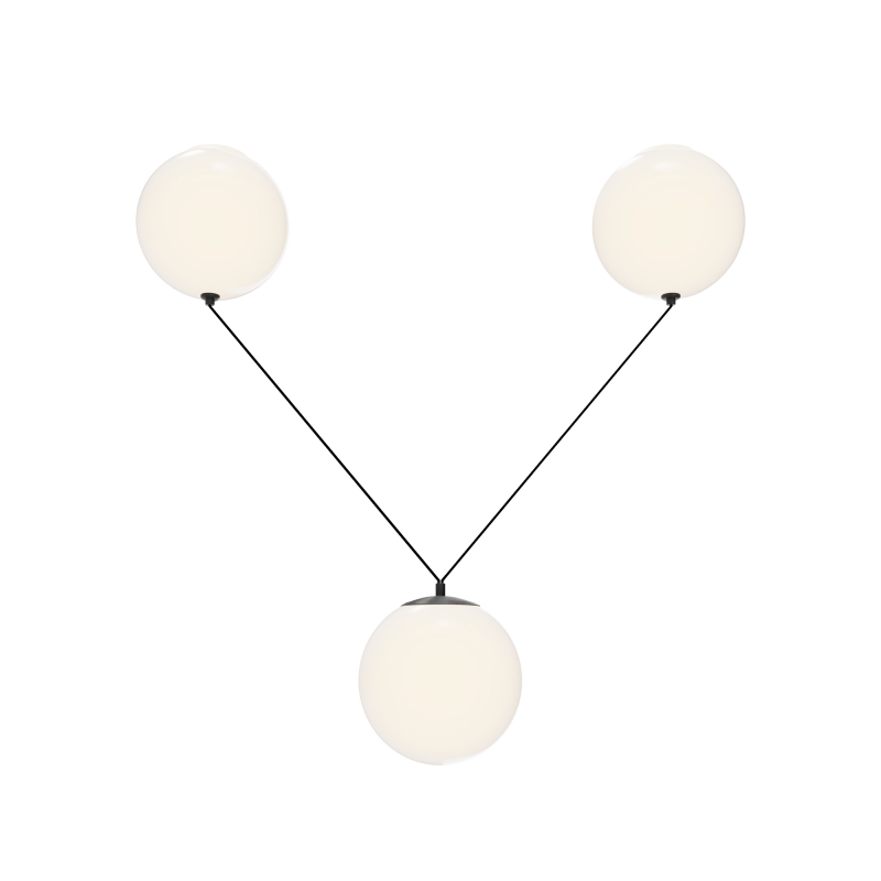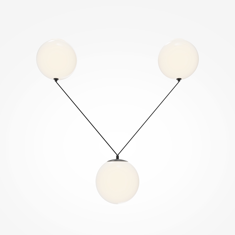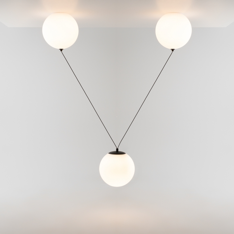 Светильник Twins представляет собой изящную конструкцию с тремя стеклянными шарами, подвешенными на черных проводах. Его минималистичный стиль и простые формы делают его универсальным решением для различных интерьеров. Черный металлический каркас контрастирует с белыми плафонами, создавая эффектный визуальный акцент. Благодаря качественным материалам, светильник выглядит стильно и современно.