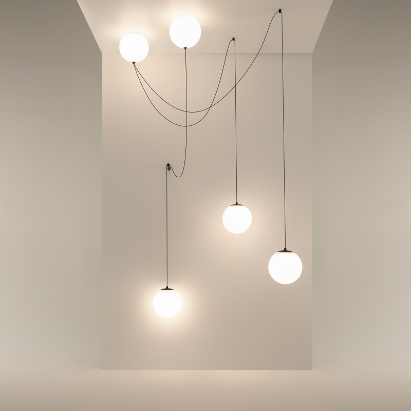 Светильник Twins представляет собой изящную конструкцию с тремя округлыми абажурами, подвешенными на черных проводах. Его стильный минимализм прекрасно сочетается с современными интерьерами. Черный цвет металлических деталей контрастирует с белым абажуром, создавая визуальную легкость и элегантность. Форма абажуров напоминает естественные формы, что добавляет нотку креативности и уюта в любое пространство.