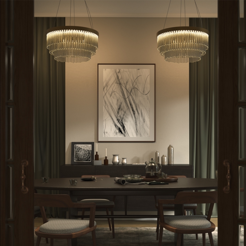 Подвесной светильник Trove прекрасно дополнит такие стили, как современный, минимализм, скандинавский и даже арт-деко. Его можно разместить над обеденным столом, в гостиной или кухне, акцентируя внимание на зоне отдыха или приема пищи.
