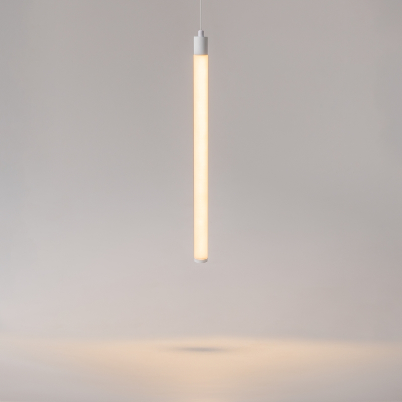 Светильник имеет простую, но стильную конструкцию в виде цилиндра, выполненного в белом цвете. Корпус создан из алюминия, а абажур из металла и акрила, что сочетает в себе прочность и легкость. Фактура и отделка делают его универсальным элементом, который гармонично впишется в любой интерьер.