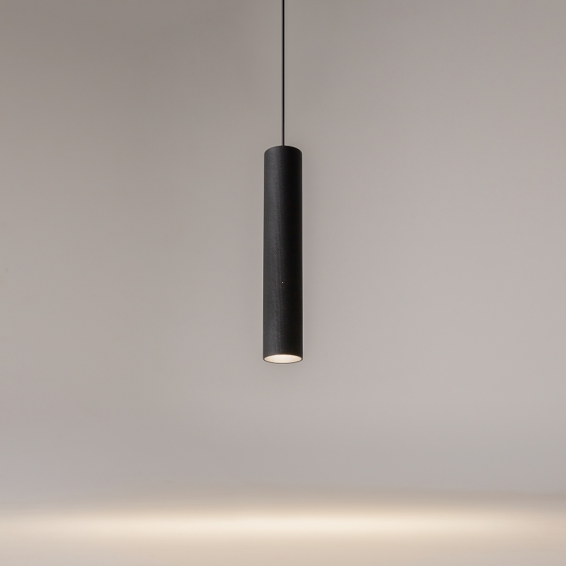 Этот светильник выполнен в форме цилиндра с гладкой текстурой, что подчеркивает его минималистичный стиль. Чёрный алюминиевый корпус и абажур гармонично сливаются, создавая единое целое. Благодаря утопленному источнику света, светильник обеспечивает равномерное освещение, а возможность дополнить его антибликовой решеткой позволяет создать комфортное освещение без слепящих эффектов.