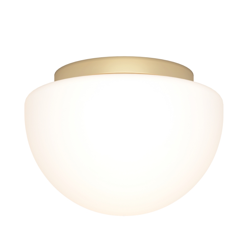 Этот светильник обладает стильной полусферической формой и изящным золотым основанием, которое подчеркивает белый матовый плафон из стекла. Его лаконичный дизайн легко впишется в различные интерьеры, создавая гармоничное освещение и акцентируя внимание на стиле вашего пространства.