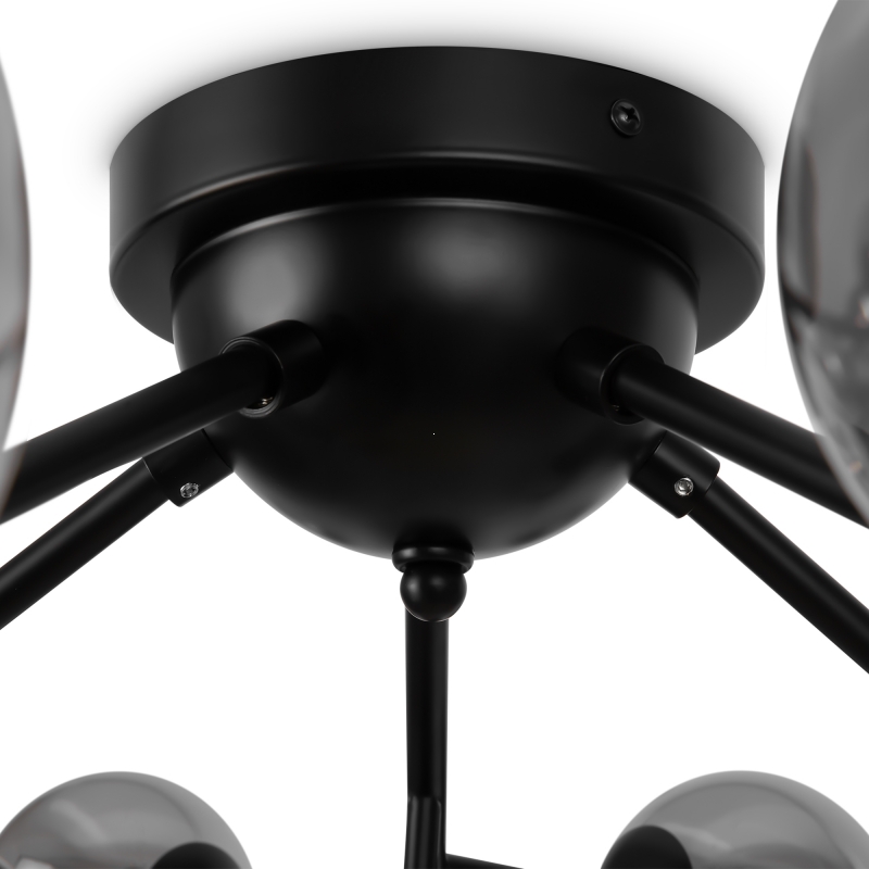 Светильник Dallas представляет собой гармоничное сочетание черного металла с дымчатыми стеклянными плафонами. Его уникальный дизайн с имитацией молекулярной структуры создает эффект легкости и пространства. Плафоны, выполненные из выдувного стекла, добавляют изысканности и шика. Внимание к деталям и высокое качество материалов делают этот светильник настоящим произведением искусства.