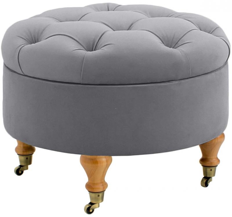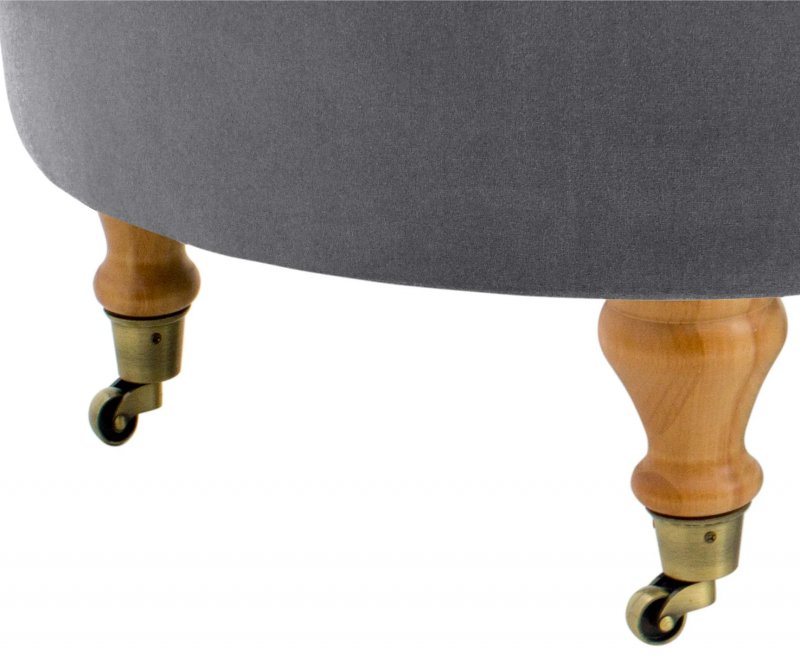 Пуф Meggi — это элегантное сочетание современного и классического стилей. Обтянутый мягкой серой тканью, он манит своим уютом и нежной фактурой. Кнопочная обивка придаёт ему изысканный вид, а массивные буковые ножки с металлическими колесиками обеспечивают легкость перемещения. Этот пуф станет не просто предметом мебели, а настоящим акцентом вашего интерьера.