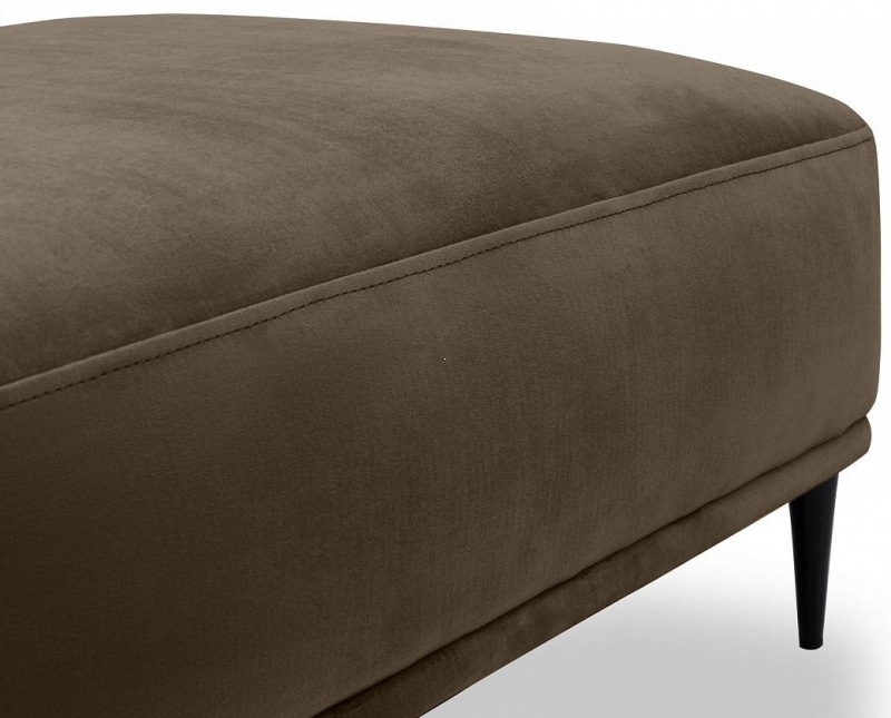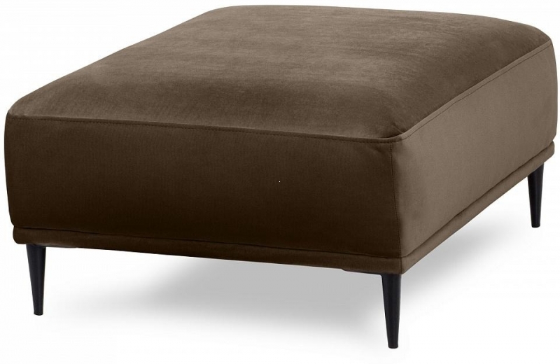 Пуф Portofino представляет собой прямоугольную мягкую скамеечку с элегантными линиями и изысканным оформлением. Выполненный в насыщенном коричневом цвете, он добавляет тепла и глубины в пространство. Использование материалов, таких как велюр и металл для ножек, создает контраст, подчеркивающий современный стиль. Фактура материи приятна на ощупь, а минималистичный дизайн делает его универсальным.
