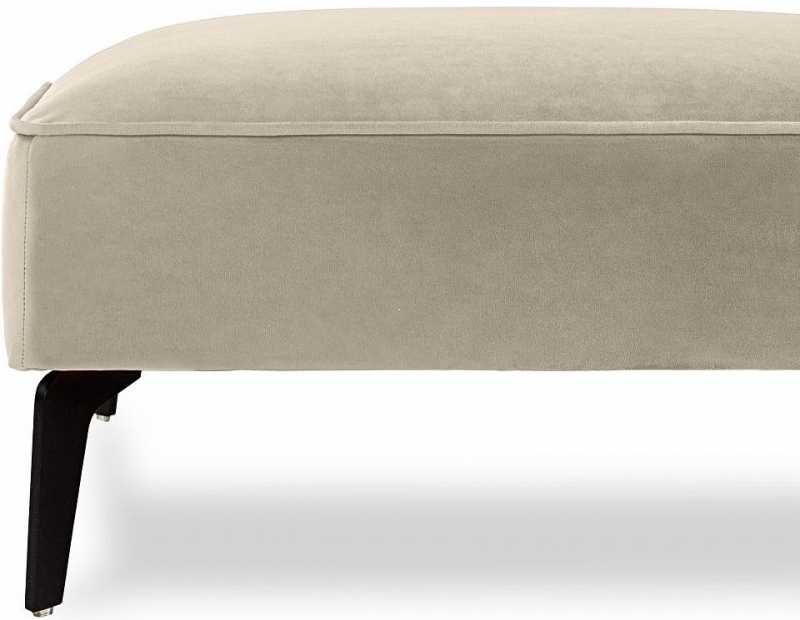 Этот пуф представляет собой квадратную форму с мягкими линиями и простыми, но стильными деталями. Нежный велюровый чехол придаёт ему роскошный вид, а черные ножки из дерева добавляют контраст и современность. Сочетание этих материалов создает гармоничное ощущение уюта и стиля.