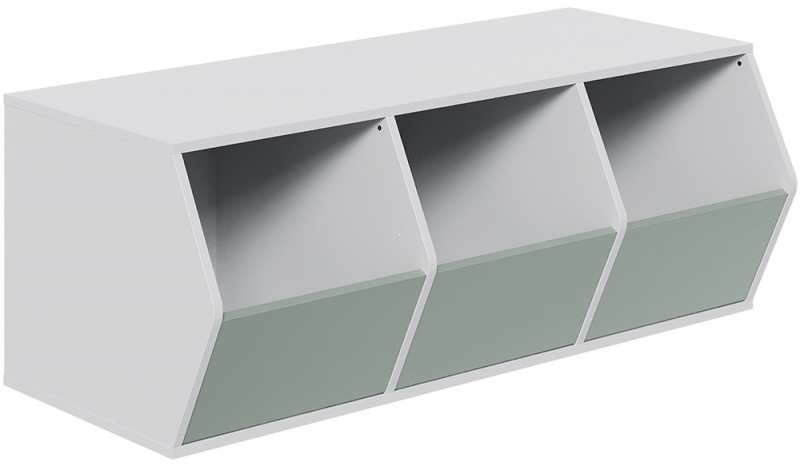 Ящик для игрушек Campi, наличие войлочных подпятников, крепления к стене не предусмотрено. Разделен перегородками на три отделения. Фасадные стенки - стационарные, не открываются. Доступ к отделениям через ниши. Ящик выполнен из ЛДСП 16мм. Декор корпуса: Белая шагрень. Декор фасада: Муссон, Розовый, Ясень коимбра. Нагрузка на крышку – 20кг.