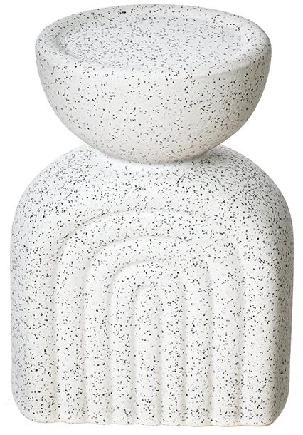 Подсвечник выполнен в современном стиле, который сочетает в себе минимализм и элегантность. Его особая форма с округлыми и прямыми линиями создает гармонию, а белый цвет с черными вкраплениями добавляет нотку утонченности. Изготовленный из качественной керамики, он обладает гладкой фактурой, которая приятно ощущается на ощупь. Этот предмет интерьера не просто функционален, но и станет стильным акцентом в любом пространстве.