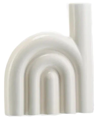 Ваза выполнена в стиле минимализма, что делает её универсальной для различных интерьеров. Цветовая гамма - чистый белый, который легко вписывается в любое окружение. Ключевые элементы дизайна - плавные линии и геометрические формы, создающие уникальный визуальный эффект.