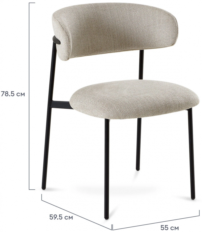 Материал обивки - рогожка, материал ножек - металл с покрытием черного цвета. На ножках предусмотрены специальные подпятники, которые предотвращают скольжение и повреждения напольного покрытия.