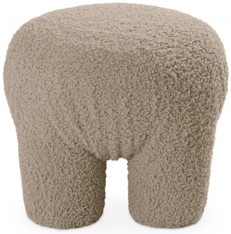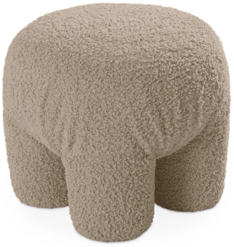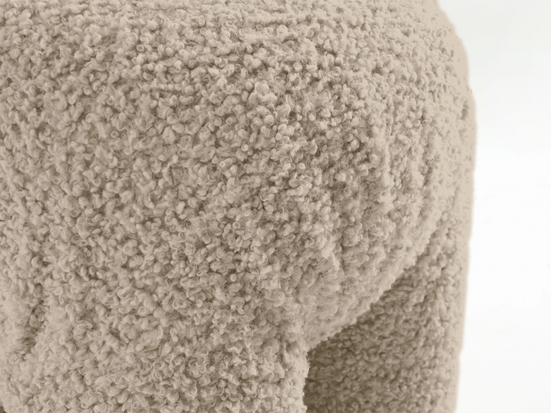 Пуф Terry имеет округлую форму и выполнен в нежном бежевом цвете, что делает его универсальным элементом для любого интерьера. Обивка из мягкого меха дарит тактильные ощущения, а декоративные складки добавляют изысканности. С металлическими ножками высотой 255 мм, он сочетает в себе современный стиль и функциональность.