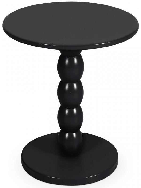 Журнальный столик Omni в чёрном цвете с круглой столешницей и выразительным основанием выглядит как функциональный арт-объект. Его силуэт строится на мягких округлых формах: гладкая столешница сочетается с центральной ножкой, составленной из объёмных шарообразных элементов. Благодаря этому столик смотрится скульптурно, но не тяжело. Матовая тёмная поверхность подчеркивает чистоту линий и делает модель особенно универсальной для разных интерьерных сценариев. Основание из массива берёзы добавляет ощущение надёжности, а столешница из МДФ сохраняет аккуратную геометрию. Такой столик легко становится деликатным акцентом рядом с диваном, креслом или кроватью.