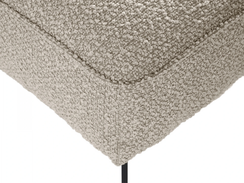 Пуф Amsterdam выделяется своим современным и лаконичным дизайном. Он имеет прямоугольную форму и изящные черные ножки, что придаёт ему легкость. Обивка выполнена из текстиля букле, который обладает интересной фактурой, создавая уютный визуальный эффект. Нежный бежевый цвет позволяет ему легко вписаться в различные цветовые палитры, добавляя ноту элегантности и стиля.