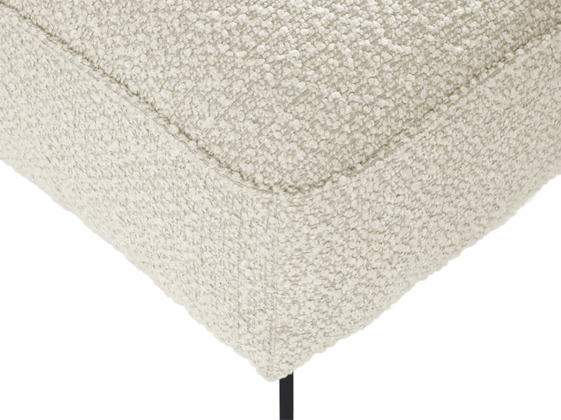 Пуф Amsterdam выделяется своей лаконичной формой и стильным внешним видом. Обивка выполнена из мягкой ткани букле белого цвета, которая приятно ощущается наощупь и добавляет изящества. Ножки пуфа, оснащенные силиконовыми подпятниками, не только защищают ваш пол, но и придают модели легкость и воздушность, создавая иллюзию парящей конструкции.