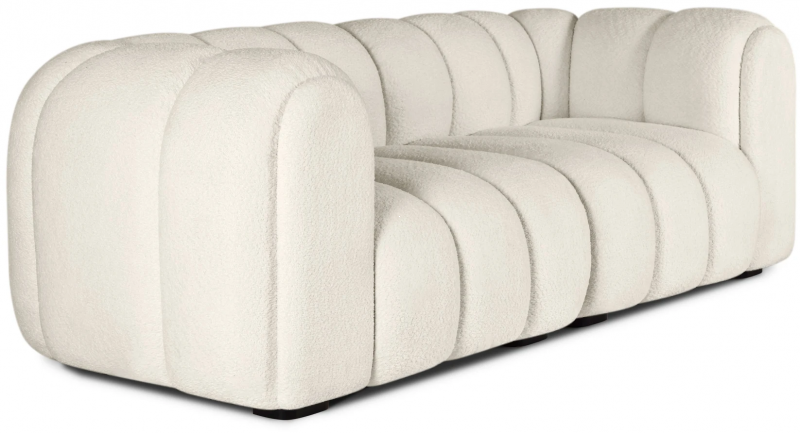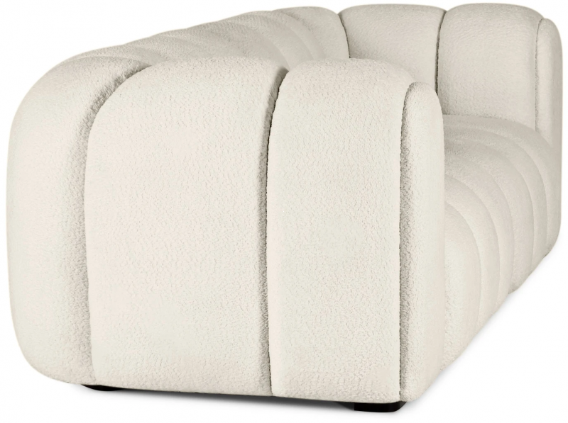 Уровень подлокотников совпадает со спинкой, что обеспечивает дополнительное удобство. Плавный силуэт и геометрическая стёжка не только добавляют фактурности, но и создают визуальное разнообразие, делая диван настоящим произведением искусства.