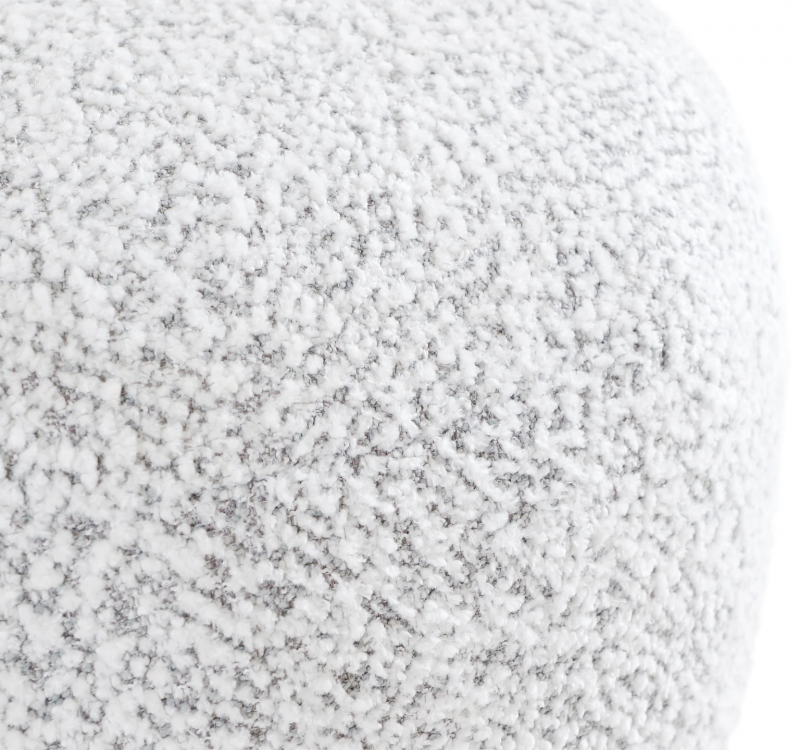 Пуф Sweet выполнен в округлой форме, что придает ему особую элегантность. Его обивка из шенилла в нежных серо-белых тонах создает ощущение тепла и уюта. Массив дерева, использованный для каркаса, обеспечивает прочность и долговечность, а пластиковое основание делает его легким и удобным в перемещении. Текстура материала вызывает желание прикоснуться, а аккуратные линии придают ему современный вид, который подойдет как для классических, так и для современных интерьеров.